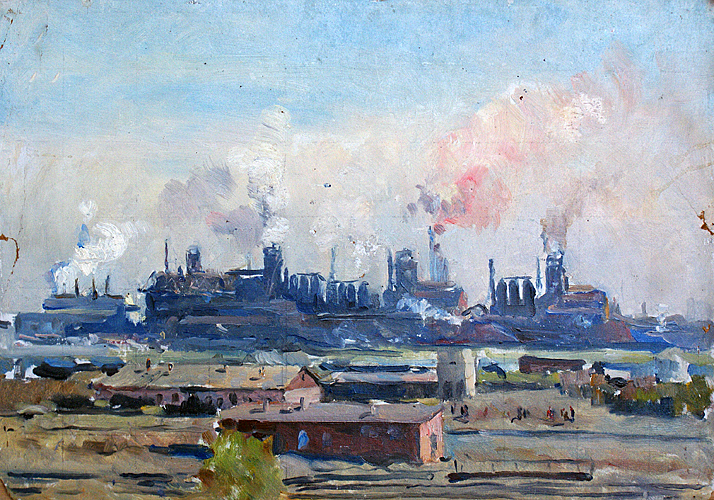 1955 год, 33,5х48,5 см, картон, масло |