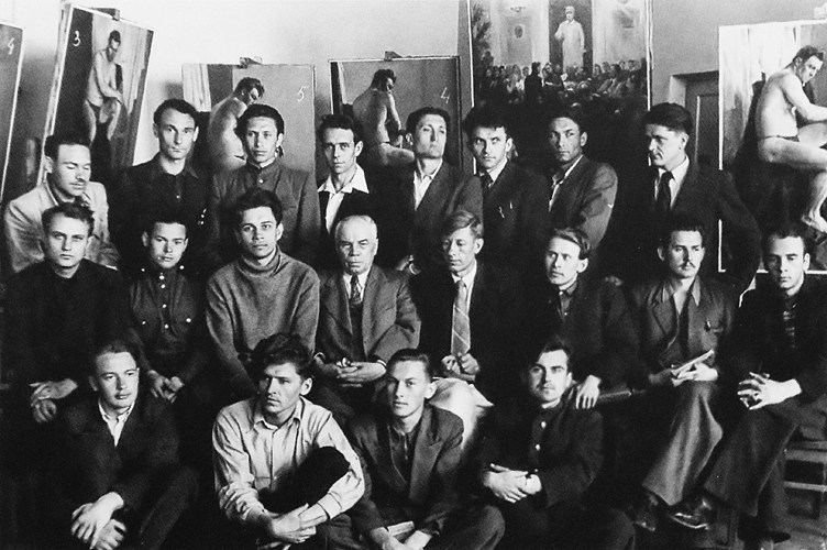 Беляк В.И. вместе со своими однокурсниками - студентами 3-го курса Киевского государственного художественного института. Киев. 1950 год