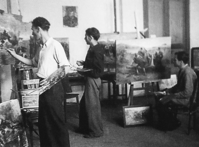 Владимир Беляк в мастерской художественного института. Киев. 1951 год