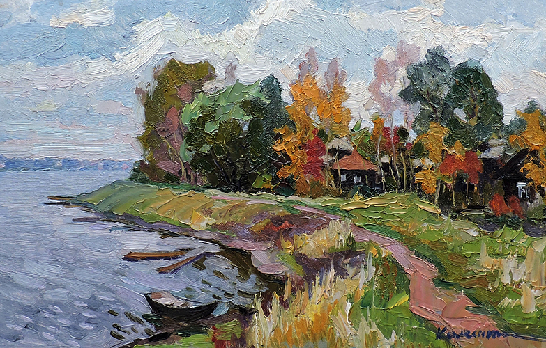 Колесник В.А. :: Берег реки :: 1981 год, 25,3х39,5 см, картон, масло |