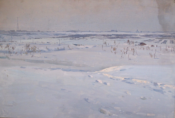 Мальцев П.Т. :: Волгоград. Снежные просторы :: 1982 год, 33х48, картон, масло |