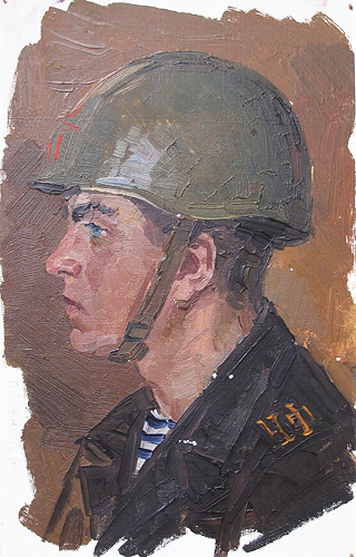 Мальцев П.Т. :: Моряк в каске :: 1950 год, 19,5х12, картон, масло |