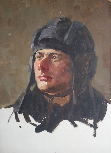 Мальцев П.Т. :: Сержант Филипенко Павел Романович, ст. механик водитель, кандидат КПСС :: 1964 год, 36х26, картон, масло |