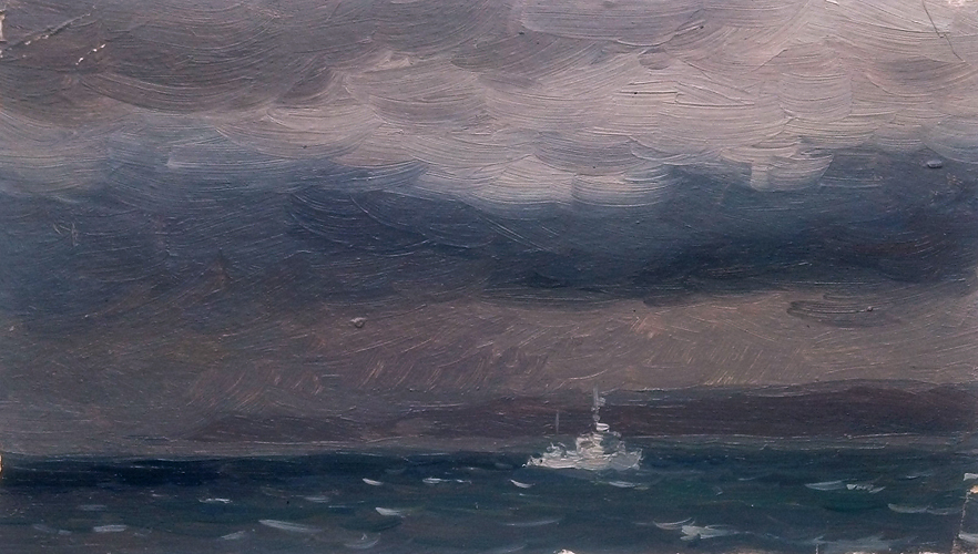 Мальцев П.Т. :: Море. Ненастье :: 1957 год, 7х13, картон, масло |
