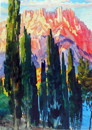 Манайло Ф.Ф. :: Кипарисы :: 1932 год, 66х48,5, бумага, акварель |