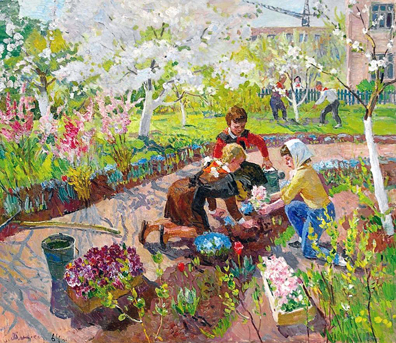 Яблонская Е.Н. :: Юннаты сажают цветы ::