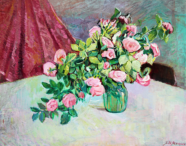 Ходченко Л.П. :: Цветы на столе с зеленой скатертью ::