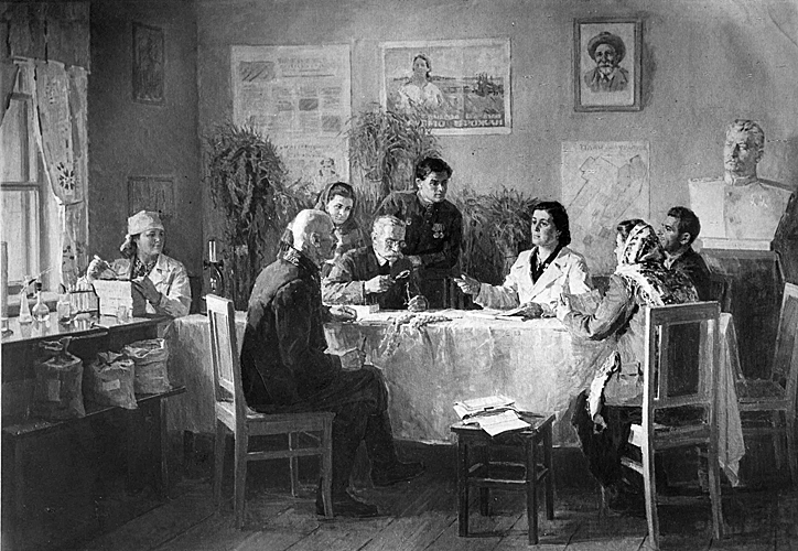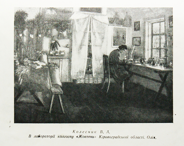 Экспонировалась представленная на сайте картина "В лаборатории колхоза "Жовтень" Кировоградской области".