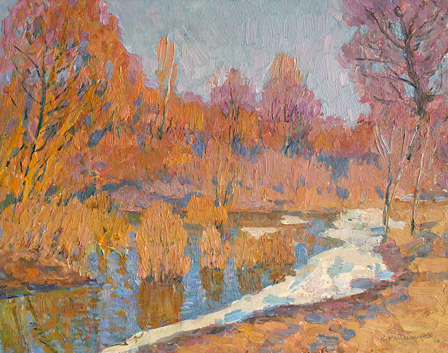 Колесник В.А. :: Берег реки :: 1981 год, 25,3х39,5 см, картон, масло |