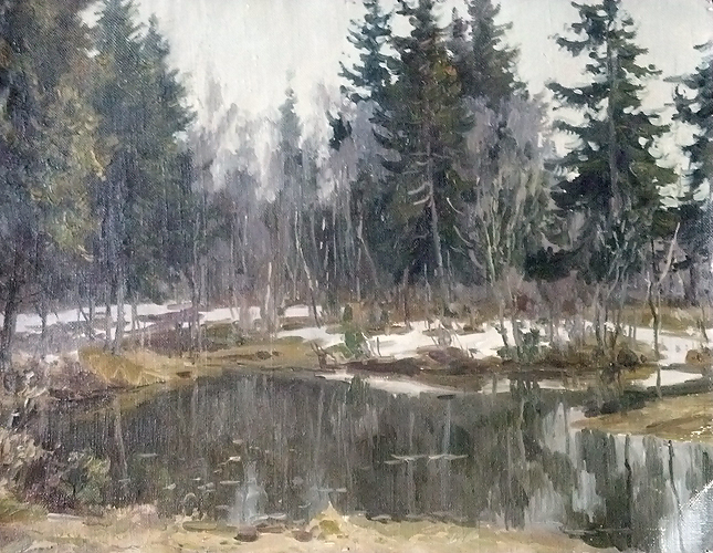 Мальцев П.Т. :: Абрамцево. Последний снег :: 1948 год, 31х40, холст на картоне, масло |