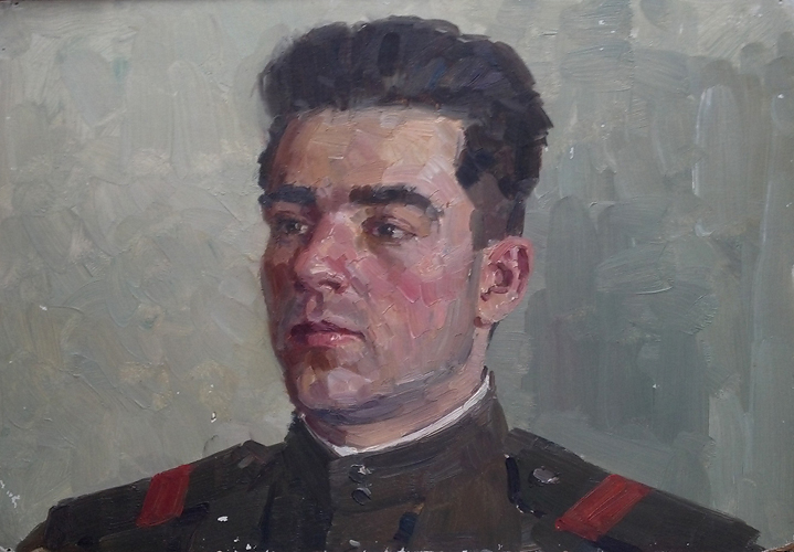 Мальцев П.Т. :: Сержант Филипенко Павел Романович, ст. механик водитель, кандидат КПСС :: 1964 год, 36х26, картон, масло |
