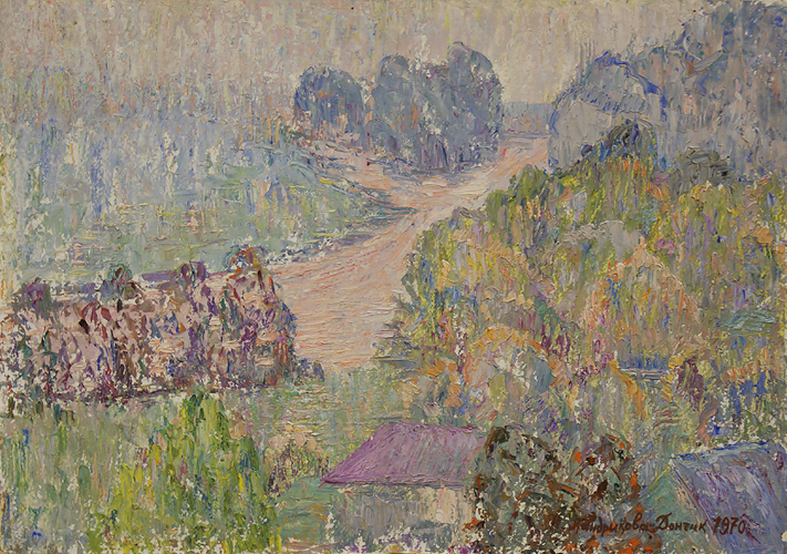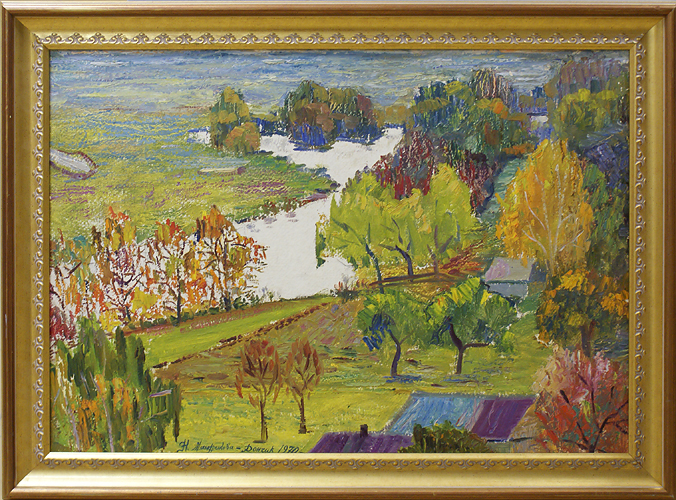 В 50-е годы она просто писала жизнь такой, какой видела: своих родных, послевоенную тоску ("Воспоминания", "Скорбящая мать", "Да здравствуют дети", "Голубой рассвет"). Главная ее тема - семья: дочь Лариса, друзья ("Моя дочь", "Новый год", "Портрет мамы", "Портрет папы", "Настенька"). Обыденное в живописи художницы неотделимо от величественного: ("Зажженная свеча", "Господи, помилуй", "Пасха"). А еще хочется побывать среди ее цветов - пионов, сирени, ромашки, подсолнечника. Погрузиться в ее цветущие "Яблоневые сады", "Вишневый садик возле хаты", погрустить с картиной"Березка ранней весной", найти ту единственную "Дорогу домой".