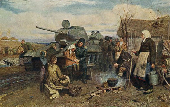 Репродукции с наиболее известных полотен живописца "В освобожденной деревне" и "О боевой славе" были напечатаны в 1955 году издательством "Советский художник" в серии открыток.