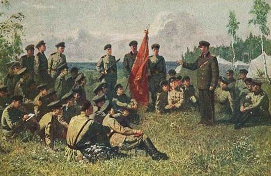 В 1944 году картина художника экспонировалась на Выставке работ военных художников студии им.М.Б. Грекова, посвященной XXVI годовщине Красной армии и Военно-морского флота, проходившей в Москве, в Центральном Доме Красной Армии им. М. В. Фрунзе.