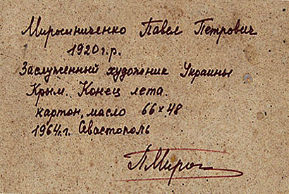 Подпись с обратной стороны картины