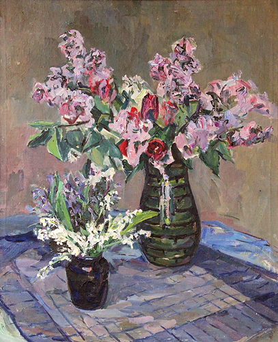 To make a picture larger, click it Exhibition of works Ponomaryova L.Z. :: Lilac and lily of the valley :: 1950-th, 72х59, oil on canvas