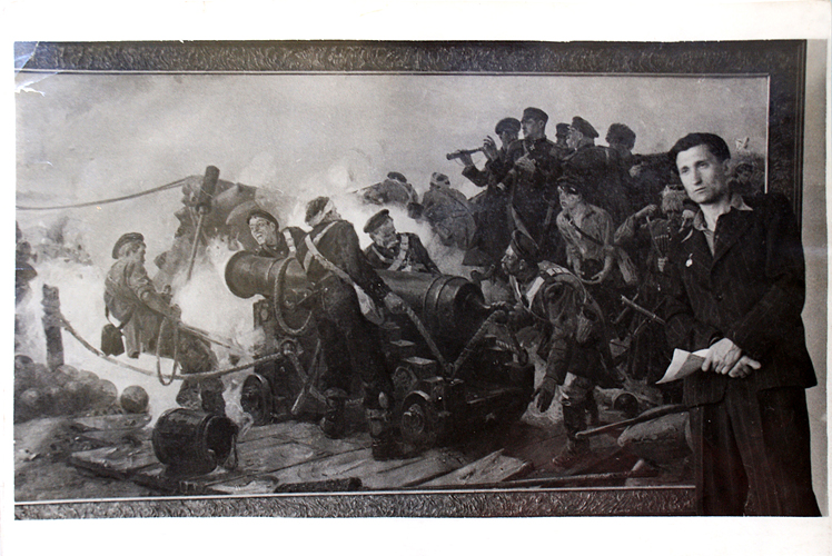 Благодаря опыту, полученному при работе над дипломной картиной «Адмирал Нахимов», принимал участие в восстановлении севастопольской панорамы, которая пострадала во время второй мировой войны. Работы проводились под руководством академика П. П. Соколова-Скаля. Участвовал в росписи главного павильона ВДНХ под руководством Дерегуса М. Г.