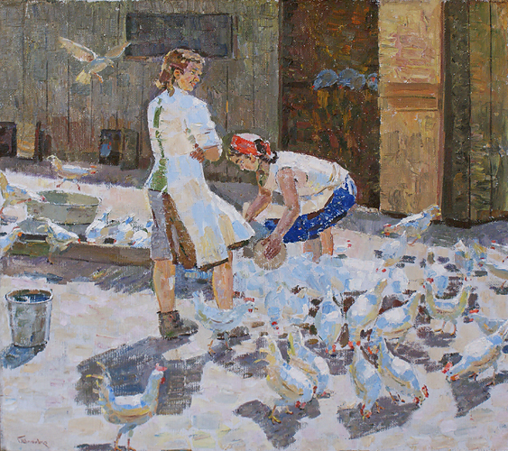 Шпонько Г. А. написал много детских портретов, жанровых сцен с детскими образами.