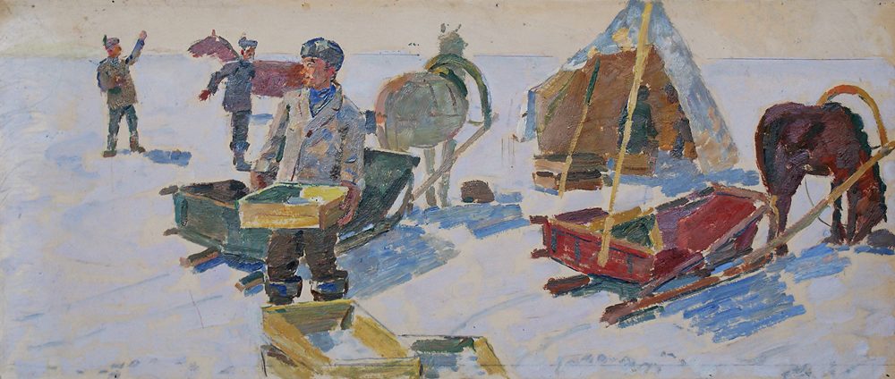 Шпонько Г. А. :: Эскиз 1 к картине "Подледный лов" ::