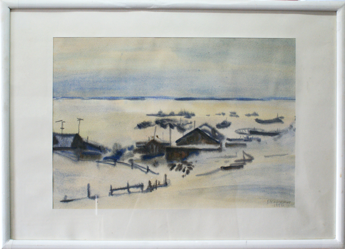 Чтобы увидеть картину в увеличенном размере, нажмите на превью на предыдущую страницу :: на следующую страницу Тарасенко В.С. :: Салехард. Серый день :: 50 х 35, акварель, 1981 г. 600$ на предыдущую страницу :: на следующую страницу