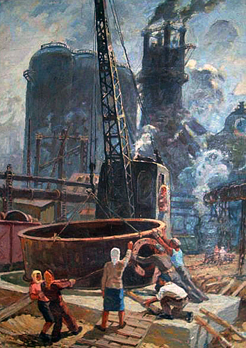 М.П.Волошин - художник широкого творческого диапазона: исторические картины на темы древней Руси и Запорожского казачества, жанровые композиции, индустриальные и городские пейзажи, портреты и натюрморты.