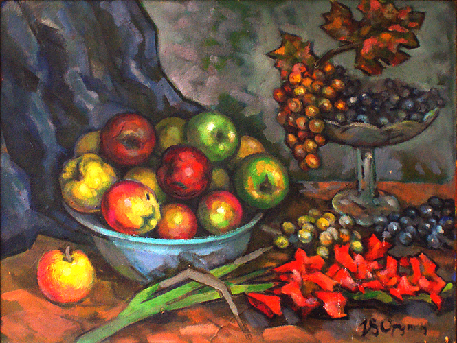 Ступин В.Е. :: Натюрморт с яблоками и виноградом ::